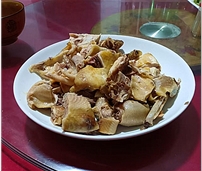 農(nóng)家菜有:開化小青螄、筍干燉豬肉、白切雞、小龍蝦、朱熹白臘肉、五婆強(qiáng)盜炒、芹江長(zhǎng)者蝦、錢江源山珍、衢州鴨頭、清水魚、馬金豆腐干、天子喜炊粉等。